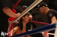 「(試合を振り返って?)ずっと連敗続きで、どん底中のどん底で毎日つらくて。まあでも、勝っても試合は固くて全然でしたね。(納得してない?)もっともっと動ける身体を作ってるのに情けない印象しかないですね。(練習とは違った?)そうですね。全部出さないと意味ないんで。ベルトを獲るためにがんばります。(ひさびさの勝利については?)作戦を練ってきたのに、どっこいどっこいになったのが課題ですね。(67kgという階級については?)2年間、自分がベルトを持っていたので、ここで獲らないと悔いが残っちゃうので。必ずベルトまでいきます」
