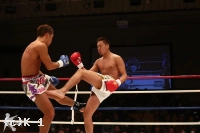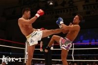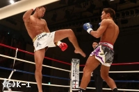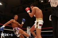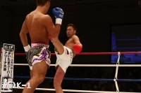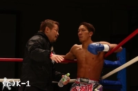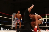 2R、FUMIYAの左ローにやや足を持っていかれる鈴木。鈴木は左ミドル、左ストレートで応戦するがFUMIYAをとらえられない。重い右ミドルを当てるFUMIYAだが、鈴木のハイをブロックした際バランスを崩して倒れ、これをダウンに取られてしまう。これはさほどダメージはないようだったが、鈴木は左ストレートを決め2度目のダウンを奪う。フィニッシュに向かう鈴木だが、FUMIYAは左ローを当て、右フックも効かせて鈴木をフラつかせる。