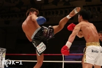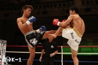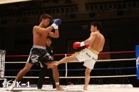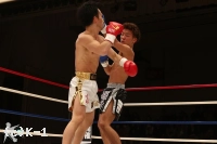 3R、開始から菅藤は龍斗をロープ・コーナーに詰めて連打を見舞う。ガードして弾くが、再び鼻血の見られる龍斗。しかし距離を作ると、左ミドル・左三日月蹴りと菅藤のボディに決める。そこから右ストレート、バックブローも打ち込む。だが菅藤も左フック・右ストレートとパンチの回転で応戦して終了。