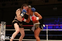 2R、KANAは顔面前蹴りを当て、グレイスに鼻血を呼ぶ。フットワークの軽快なKANAはグレイスのパンチを目先でかわし、右ローで足を殺していく。ここでグレイスの出血が激しくなり、ドクターチェックが実施される。再開するとKANAは左ボディフック、右ミドルとボディ攻めを忘れず、ジャブ・ストレートでもとらえてグレイスを再び出血させる。前蹴りを入れてグレイスを遠い間合いに下がらせ、パンチを見切ってかわすKANA。