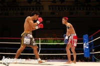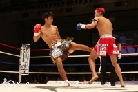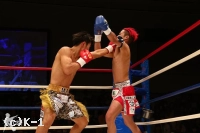 3R、ジャブからダッシュで前に出た芦澤はボディへのヒザ蹴り。しかし大岩もすぐ前に出てきて、芦澤をロープに追い詰める。目のよい芦澤は大岩が振るうフックをダッキングでかわし当てさせない。ジャブで下がらせたい芦澤だが大岩は下がらず、ジャブ、左フックと次第にパンチでとらえていく。だが芦澤も黙っておらず、アッパー、右ストレートと当て返す。大岩は重心を低くしながら前進して左右のフック、芦澤はこれに右ストレートとヒザで対抗して打ち合い試合を終える。