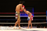 「(試合を振り返って?)応援してくれる仲間がどんどん増えて、その前で勝てたことがうれしいです。(相手の印象は?)ここのところKO勝ちしている選手なので、警戒しすぎました。強かったです。(夏には名古屋大会が控えているが?)KO勝ちしたら名古屋でリベンジしたいと言おうと思ってたんですけど、今回は判定で言えなかったので。今回はアグレッシヴにいけなかったので、名古屋は気合いを入れて、ベルトに挑戦できればと思います」