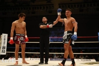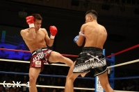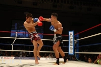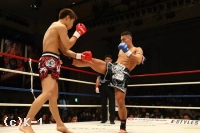 3R、中島は右ローを入れながら前に出る。神保は押されながらも左右フックを振るってこれに応戦し、ここでも再び跳びヒザ蹴り。さらに左ボディフックも中島にめり込ませる。神保も中島を押していく。そして跳びヒザから右ストレートとトリッキーなコンビネーションでも中島をとらえる。中島も得意の跳びヒザを繰り出すが、神保は下がらない。中島は神保をプッシングして右ローキック。だが、神保も跳びヒザから左右パンチを繋いで終える。