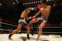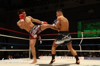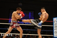 2R、中島はやはり右ローで行く。神保も鋭い踏み込みのワンツーで出て、右ストレートで中島をとらえる。しかしさらに右ストレートを繰り出すと、中島はこれに合わせた右ストレートのカウンターをヒット。中島は左インロー・右ローと足攻めを多用。神保は左右ストレートを伸ばすが、足が効いてやや踏み込みが浅くなっているか。それでも左ボディフックで中島をとらえる。中島が前に来たところで神保はさらに中島のお株を奪う跳びヒザを見せる。