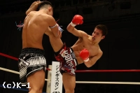 1R、開始から打ち気で左フック・右ストレートとパンチを振るっていく神保に中島は右ローを打ち込み右ストレートを伸ばす。蹴りとパンチを織り交ぜる中島に対し、神保はパンチ主体で、左ジャブで中島の顔を突く。中島は神保のパンチをブロックして右ローを蹴りためる。