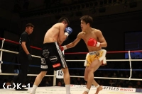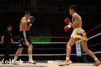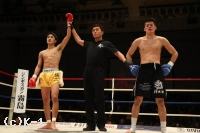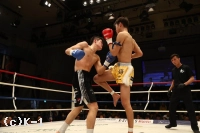 3R、ボディにヒザを入れ、その後は左回りする瓦田に対し、山下は距離を詰めて追っていく。しかし瓦田はその左回りの間に右ストレートを伸ばしてヒットを上げ、山下に追わせない。山下も左ミドルを打ち込むが、瓦田は右ストレートを打ち込みその後の攻撃を分断する。左ミドルを当て、そこから左右フックを振って接近戦の打ち合いに持ち込まんとする山下だが、瓦田は左回りの足を止めず、思い通りに進めさせない。