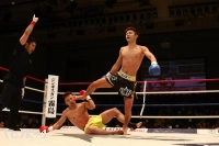1R、玖村はサウスポーの大川に右ミドル、右前蹴りと入れ、大川の蹴りをかわして右ロー、右ストレートも当てていく。大川が左ストレートを振るって打ち合いに来るが、そこで右ストレートから返しの左フックでとらえてダウンを奪取。立ち上がった大川に右ハイを決めて2度目のダウンを与えると、大川は左ストレート、右フックでダウンを奪い返しに来るが、最後は玖村が右ストレートから左フックで大川を腰砕けに倒し、初回KOでKrushデビュー戦を飾った。