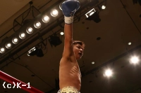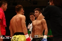「(試合の感想は?)練習してきたことができたのでよかったです。(対戦相手の印象は?)最初に来たときに『コレはいけるな』と思って、ドンドン自分のペースでいけました。(今後の目標は?)この階級のトップ選手と一戦でも早くやりたいので、ドンドンKOしていきます」