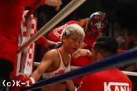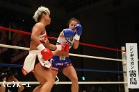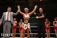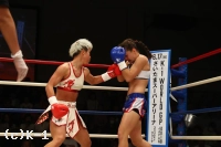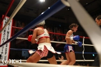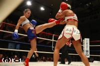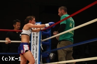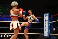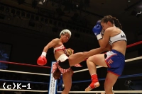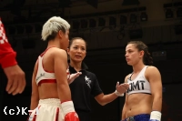 「(試合を振り返って?)楽しかった。とてもハイペースで疲れる試合だったんですけど、彼女はいい選手だと思う。(対戦相手の印象は?)とてもスピードがあって手数も多く、ガンガン前に出てくる強い選手だった。(今後の目標は?)次回戻ってくるときには体力つけて。ムエタイのクセが出ないように、もっとK-1ルールの練習をしっかりして出たい。(1Rのカウンターのパンチは狙っていた?)私は基本的に蹴り主体だけど、今回のパンチはラッキーでダウンを取れたのでよかったと思います」