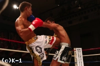 3R、スピードで上回り、先手でパンチを放って切り込む和夢だが、鷹大はブロッキングが的確でジワリジワリと前に出る。そして和夢の攻撃の間に右フック、左フックと放ち上体をのけぞらせるヒットを上げる。しかし和夢も右ストレートを当て返す。和夢のパンチを目先でかわし、ストレートを中心としたパンチをリターンする鷹大。判定は30-29、30-29、30-29の3-0で鷹大。Krush初戦で白星を上げた。