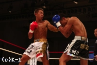 2R、和夢が先手でミドルを蹴り、鷹大が蹴り返してくるとこれをかわして当てさせない。鷹大は後手となるものの、左右フック、ローと単発ではあるがヒット数を上げる。先手は変わらない和夢だが、徐々に鷹大がプレッシャーを利かせていく。