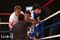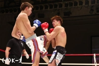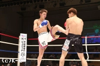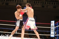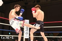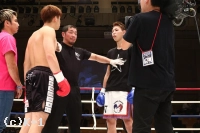 3R、塚本は再びリーチを利したヒザと前蹴り。しかし佐野はこれで退かず、右ローを塚本に蹴り込む。接近してヒザを狙う塚本を佐野はジャブを当てて下がらせ、右ローを連係。塚本は脚が効いてきたか、佐野を下がらせられなくなる。しかしボディにヒザを突き上げ、これで佐野をストップする。ここで掴んでのヒザも放ってしまいレフェリーから注意を受ける塚本。佐野はヒザを恐れず近距離から右ショートフックを振るって試合を終える。
