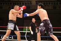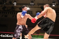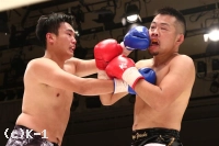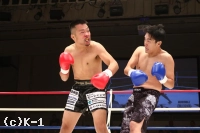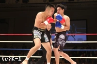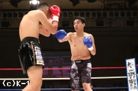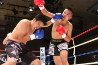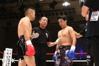 2Rもヨースケは変わらず前に出て圧力を掛ける。冨沢もこれを押し返して応戦する。ヨースケが前蹴りを飛ばし、その蹴り終わりに冨沢はジャブをヒット。バランスを崩したヨースケであったが、これをレフェリーにダウンと取られてしまう。しかし立ち上がったヨースケは、これで火がついたように反撃へ転じ、右クロス、右フックと冨沢に打ち込んでいく。右アッパーも繰り出すヨースケだが、冨沢もこれに退かず自分の距離を作ってジャブ、右アッパーと当て返す。右クロス、左フックも当てる冨沢。