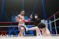 立ち上がった岩にゴンナパーは左ハイキックを打ち込んで初回を終える。