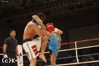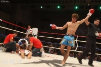 1R開始のゴングから激しくパンチで打ち合う両者。戸邊はパンチだけでなく左ミドルや右ローにつなげる。隆聖も右フックを叩き込み、そこから一気に連打をまとめる。中盤以降、戸邊は左右のローで隆聖の足を止め、左ハイキックをズバリ。この一発でダウンを奪う。