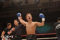 3R、一気にパンチとヒザ蹴りで前に出る小澤。右フックを効かせると、右ストレートを叩き込んで翔也をなぎ倒す。何とか立ち上がる翔也だが、小澤がすぐさまパンチで襲いかかり、右フックを連打。これで翔也はばったりと後方に倒れ、小澤が衝撃のKO勝利を収めた。(小澤=勝ち点5、翔也=勝ち点3)