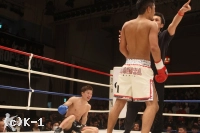 3R、明戸が左フックと右ロー、大沢は顔面前蹴りと奥足ローを蹴る。一気にパンチの手数を増やしてハイ・ローにつなげる明戸。大沢は左フックを打ち返して奥足ローへ。最後まで攻め続けた両者だったが決定打はなく試合終了。判定はジャッジ1名がドローとしたものの、残り2名は大沢を支持。ダウンを奪い合った一戦は大沢がモノにした。