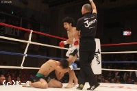 1R、長身でサウスポーの早坂が左ミドル、佐々木も右の蹴りを返して左フックのカウンターを狙う。左ミドル・左ストレートで前に出る早坂。しかし佐々木がカウンターの左フックを合わせてダウンを奪うと、左フック、パンチの連打で立て続けに2度のダウンを奪い、見事なKO勝利を収めた。