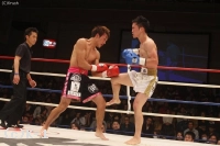 1R、石橋が小刻みなステップから前蹴りと右ロー。神戸はジャブ・左フックから右ハイにつなげる。お互いにジャブを打ち合い、神戸が左右のボディフック。石橋は前蹴りと右ローを蹴る。神戸はプレッシャーをかけて、石橋を下がらせるとボディ打ち。そして右ハイキックを当ててダウンを奪う。すぐに立ち上がった石橋も右のヒザ蹴りで前に出て応戦。ダメージを感じさせない動きで打ち合う。