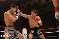 3R、真弘がガードを固めて奥足ロー。青津は顔面前蹴りやヒザ蹴りで迎え撃つ。真弘は青津をプッシュして奥足ローを狙い撃ち。青津も真弘の前進に右フックを返して、ヒザ蹴りにつなげる。残り30秒、前に出る真弘が奥足ローと左ミドル。青津も細かい連打をまとめてバックブロー。最後は真弘がバックブローを狙ったところで試合終了となり、判定3‐0で真弘の勝利。真弘が青津のリベンジを退けた。