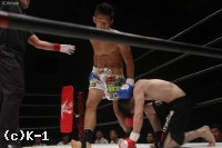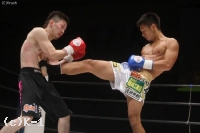 2R、伊澤は前に出て右ロー、磯部は左右のフックと右ローを返す。伊澤はヒザ蹴りと左ミドルでボディを攻め、右ローを効かせる。さらに伊澤は磯部をコーナーに詰めて右ストレートとヒザ蹴り。右ローで磯部の動きを止めると一気にパンチを連打、コーナーを背負う磯部の左足にパンチを落とす。そして終盤、伊澤が右ローでダウンを奪う。