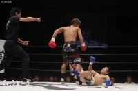 2R、平塚が左右のミドル&ロー、東本は左ストレートからパンチをまとめる。平塚はパンチをまとめて左ローにつなげるが、東本が左ストレートを打ち抜いてダウンを奪う。再開後、東本が左右のフックを打ち込むと平塚が2度目のダウン。何とか立ち上がった平塚だったが、ダメージが大きくレフェリーが試合をストップした。