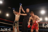 延長R、翔也が徹底して塙の前足にロー。しかし塙も右アッパーを当てて、一気に連打をまとめる。翔也のローで体が流れる塙だったが、距離が詰まるとパンチとヒザ蹴りで前に出る。翔也は徹底してローを蹴り続け、そこから右ハイキック。塙も右アッパーとフックで応戦し、最後まで激しい打ち合いが続いた。本戦同様の接戦は判定2-1と割れ、塙に軍配。ここまかでプロ戦績5戦5勝の塙が新人王の栄光を手にした。