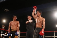 3R、落合が左ミドルを蹴って突進。松野は右ストレートから前に出る。落合は松野を押し返して左ミドルとロー、ボディにヒザ蹴りを突き刺す。松野も近距離で右フックとアッパーを打ち込んで譲らない。最後はパンチとヒザ蹴りで打ち合う展開で試合終了、松野が接戦を制した。