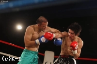 2R、ガードを上げて前に出る秋元が右ローとヒザ蹴り。これで攻め続ける秋元だったが、内山がタイミングよく右ストレートをを合わせてダウンを奪う。再開後、秋元は右ハイキック、左右のフックとヒザ蹴り。内山は右ストレートとローを返す。