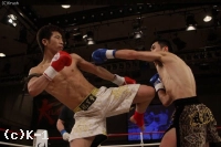 3R、左フックで飛び込む遠藤。平塚は左ミドルを蹴りながら、左フックと右ローで前に出る。遠藤は平塚の蹴りをかわして左右のフック、平塚も強気に打ち合う。前に出る平塚と下がりながらカウンターを狙う遠藤。ジャッジ3名ともポイント差をつけず、ドローに終わった。