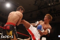 3R、牧平は前蹴り、ヒザ蹴り、左ミドルと徹底したボディ攻め。中澤もこれに耐えて、カウンターのパンチを返す。牧平は左ハイキックと飛びヒザ蹴り。中澤も右ミドルとバックブローで反撃するが、牧平の左の蹴りを出し続ける。そのまま試合終了となり、2度のダウンを奪った牧平が中澤から勝利をもぎ取った。