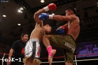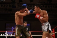 3R、パンチと右ミドルで前に出る三輪。勇磨は徹底的にヒザ蹴りで攻め、バックブローも当てる。接近戦でパンチとヒザ蹴りを出す展開が続いて試合終了。判定は勇磨に1票入ってのドローに終わった。