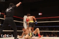 1R、ジャブを突く闘士。北井は距離を取りながらインローを蹴る。お互いにローとミドルを蹴り合う展開が続く中、闘士がカウンターの右ストレート。これで北井の動きを止めると、再び強烈な右ストレート。これで北井をマットに沈め、闘士が見事なKO勝利を収めた。(闘士=勝ち点3、北井=勝ち点0)
