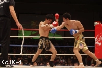 3R、密着した状態からパンチを打ち合うような展開が続くが、松倉が右のヒザ蹴りから右フックを当ててダウンを奪う。すぐに立ち上がった吉川はパンチで前進。松倉もヒザ蹴りで迎え撃つが、吉川は下がらず。ダウンを奪った松倉が判定勝利した。