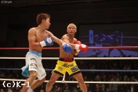2R、左フックで飛び込むkazyosi。大川は左ミドルを蹴りながら、右フックを狙う。kazyosiは右の蹴りを返して、細かくパンチをまとめる。大川もブロックを固めて右フック。kazyosiは右ボディから右フック、右ストレート。大川はパンチのコンビネーションから左ハイキックにつなげる。
