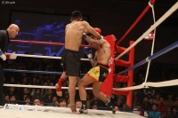 1R、サウスポーの板橋がインローと奥足ロー。これがローブローとなり試合が一時中断となる。再開後、板橋は左右のロー、トッチは右ストレートを返す。板橋は左ストレートを返し、奥足ローを狙い撃ち。そして左ストレートでダウンを奪う。