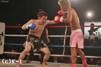 3R、ガードを固めて突進する鎌田が右ロー。アンドリューを下がらせて右ストレートを当てる。アンドリューも左フックや右ストレートのカウンターを狙うが、クリーンヒットはない。最後まで右ストレートと右ローで前に出続けた鎌田が判定で勝利した。