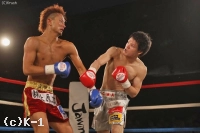 3R、右フックから突進する加藤。島野も下がりながら右を返すが、加藤が勢いで勝り、左右のフックを叩き込む。島野も必死にパンチを返すが、残り10秒、加藤のジャブ、右ストレートが島野を捉える。判定2-0で加藤が勝利した。