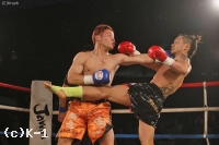 1R、翔也が距離を取りながら左ミドルを蹴る。KO-ICHIはジャブ、左フックで飛び込んで右のパンチにつなげる。このラウンドは翔也が左ミドル、KO-ICHIが左のパンチで飛び込む展開が続いた。