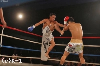 1R、じりじりと前に出ていく伊澤。隆聖はリング内をグルグルとステップし、鋭い踏み込みから顔面とボディにパンチを打ち分ける。伊澤もガードを固めて右ローで反撃。的確に隆聖の左足を狙う。終盤、伊澤が右のカカト落とし・右ローを決めると、隆聖がバランスを崩す。