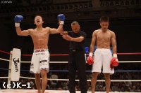 延長R、パンチと右ローで攻める鈴木。大滝も近距離で細かい連打を打ち込む。中盤、鈴木が左ミドルを連発すると、大滝もボディにヒザ蹴りを集める。このラウンドもお互いの攻撃が激しく交錯する熱戦となり、最後は鈴木がパンチ、大滝がヒザ蹴りを繰り出して終了のゴングが鳴る。判定はジャッジ3名とも10-9で大滝。鈴木との接戦を制した大滝が決勝への切符を掴んだ。