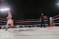 3R、寺戸は再び距離を取りながら右ロー。プリリップも右ストレートを伸ばしてパンチで前に出るが、寺戸は徹底して右ローを蹴り続ける。さらに左ボディも狙う寺戸。これでプリリップの動きが止まり、寺戸が右ストレートからパンチをまとめる。