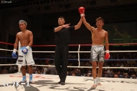 3R、ローとミドルで前に出るKazyosi。コーナーを背負う匠にパンチを打ち込むが、匠が左フックを当てる。Kazyosiはローから前に出て、右ストレートから左フックを打ち込む。一気に手数を増やして前に出ていくKazyosi。匠は右目を腫らしながらもパンチで打ち合い、試合終了のゴングを聞く。最終ラウンドに猛反撃したKazyosiだったが一歩及ばず、匠の判定勝利となった。
