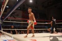 1R、じりじりと前に出る武尊。ソルビンはそこに左フック、右ストレートを狙う。武尊は前蹴りでソルビンを吹っ飛ばして左ボディを打つ。ソルビンは下がりながら左右のストレートと左ミドル。ソルビンのヒザ蹴り、ローに右ストレートを合わせる武尊。ソルビンのミドルをすくって右ストレートを当てると、ソルビンをロープに詰めて強烈な右ボディ。ソルビンの頭が下がるとヒザ蹴りを突き上げ、ボディブローからパンチをまとめる。さらに武尊はヒザ蹴りと前蹴りでボディを攻め、ロープを背負うソルビンにパンチを打ち込み続ける。