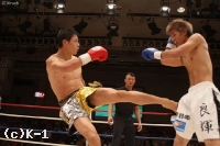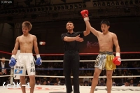 3R、ガードを下げた構えから大雅が左ミドル。YOSHIKIもパンチのフェイントから右ハイキックにつなげる。大雅は左のヒザ蹴りと左ストレート、左の攻撃を積極的に出す。YOSHIKIも右の蹴りと右ストレートで前に出ていくが有効打はない。パワフルな攻撃で攻め続けた大雅が判定勝利をもぎとった。