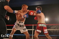 3R、左ミドルと前蹴りで距離を取る北井。琢磨が前に出てくるところにジャブと左フックを合わせる。積極的にパンチで前に出る琢磨。北井はガードを固めてヒザ蹴り、左フックのカウンターをタイミングよく当てる。残り15秒、北井が右ストレートから前に出て琢磨を下がらせる。フルラウンド打ち合った両者、ダウンを奪った北井に凱歌が挙がった。