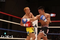 1R、いきなり激しく打ち合う両者。結城はサウスポーの大川に右ハイキックから右フックを打ち込む。大川は距離を取りつつ、左ストレートから右アッパー。結城はプレッシャーをかけ続け、右ストレートでダウン奪う。再開後、結城が右ハイキックから連打、右ストレートで大川を吹っ飛ばす。ここでラウンド終了となり、大川にとってはゴングに救われる形となった。