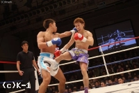 2R、鈴木が右ローを蹴って、Kazyosiのローに右ストレートのカウンターを狙う。パンチで飛び込む隙をうかがうKazyosiに鈴木は右ロー。Kazyosiはジャブを突いて、右のパンチで飛び込む。しかし鈴木がカウンターの右ストレートを当て、返しの左フックにつなげる。このまま鈴木ペースになるかと思われたが、ラウンド終了間際の打ち合いでKazyosiがパンチを当てて、鈴木の動きを止める。