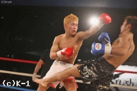 2R、Shi-moは距離を取りながらパンチとローを散らす。勝大もパンチのプレッシャーをかけてロー、ボディにヒザ蹴りを突き刺す。ガードを固めるShi-moにパンチとヒザ蹴りで攻める勝大。Shi-moは押し返して右ストレートのカウンター、右ローを当てる。