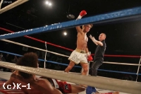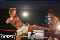 1R、前蹴りで距離を保とうとする北井。悠矢は右ローを飛ばしながら左フックで詰めていき、両者の距離が狭まっていく。悠矢の左フックと北井の右ストレートが交錯し、北井のパンチがヒットして悠矢がグラつく。北井がパンチをまとめて攻勢に出ると、悠矢も左フックで応戦。悠矢は下がらずに圧力をかけ続け、後退し始めた北井に右ストレートをクリーンヒット。大きくグラついた北井をコーナーに追い込んでラッシュを浴びせてスタンディングダウンを奪うと、再開直後に強烈な前蹴りを突き刺して2度目のダウンを奪取。残り30秒で悠矢がパンチの連打で試合を決めにかかるが、北井もパンチで必死に応戦してラウンドを終える。